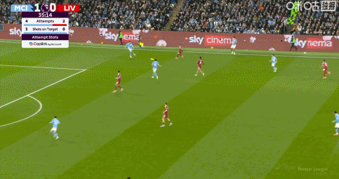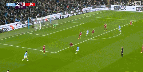 第62分鐘,閃耀全場!多庫內切兜射世界波破門!曼城3-0利物浦!